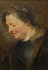 Een traditie identificeert de geportretteerde als Maria Pijpelincx, de moeder van Peter Paul Rubens. Deze dame trad noodgedwongen uit de schaduw van haar ontrouwe echtgenoot, Jan Rubens, door genade voor hem te pleiten bij de familie van Willem van Oranje-Nassau, die door dezelfde affaire bedrogen was.
